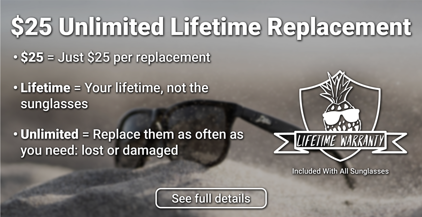 Click HERE for all things warranty. 6 month break a pair comes standard and we also have a Lifetime Replacement Warranty that gets you $25 replacements for life on lost or broken shades!